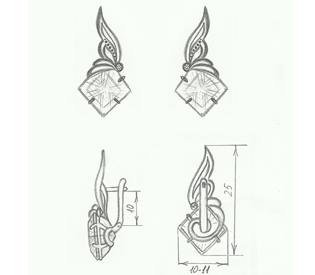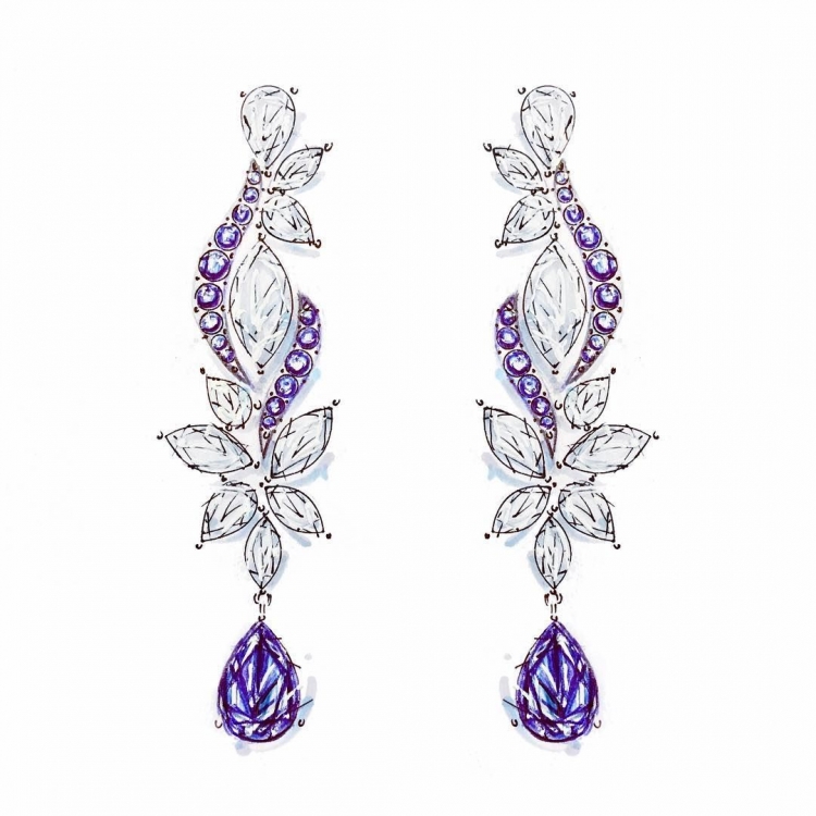 Earrings featuring reflective amethyst stones, creating a sense of depth and mystery.